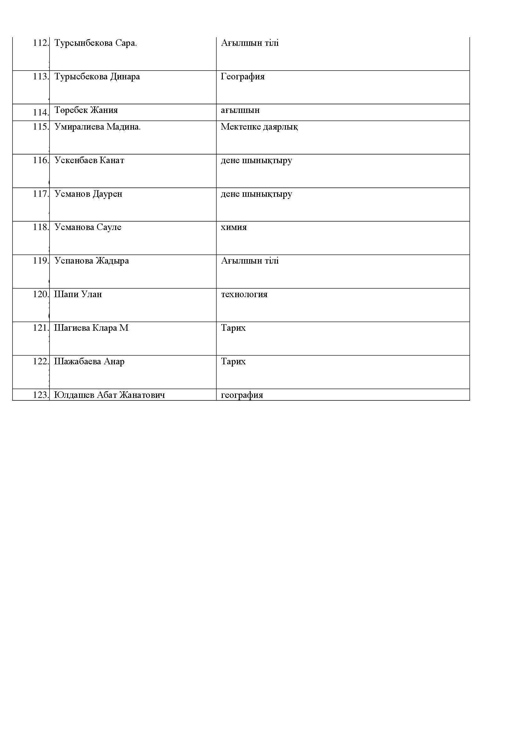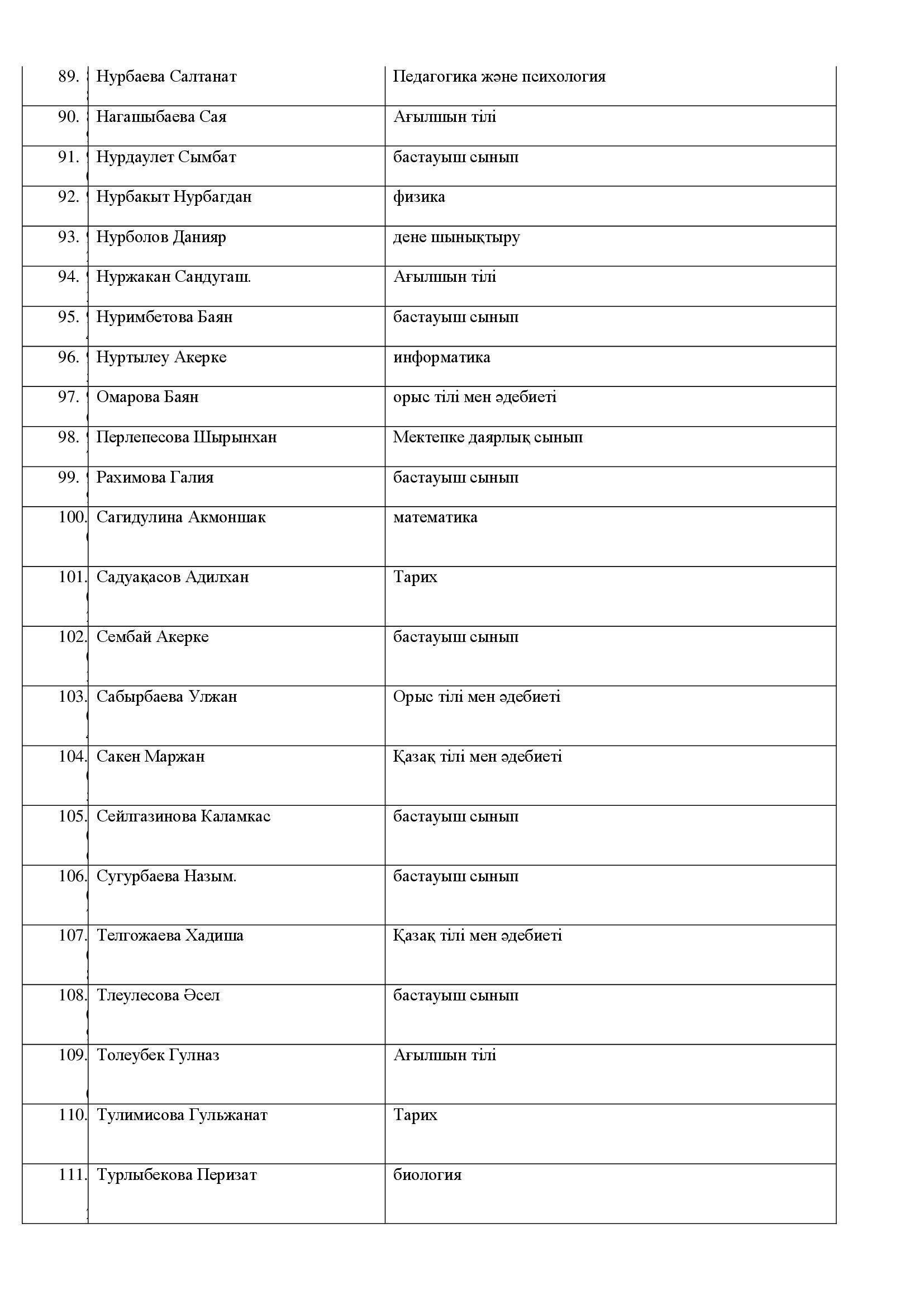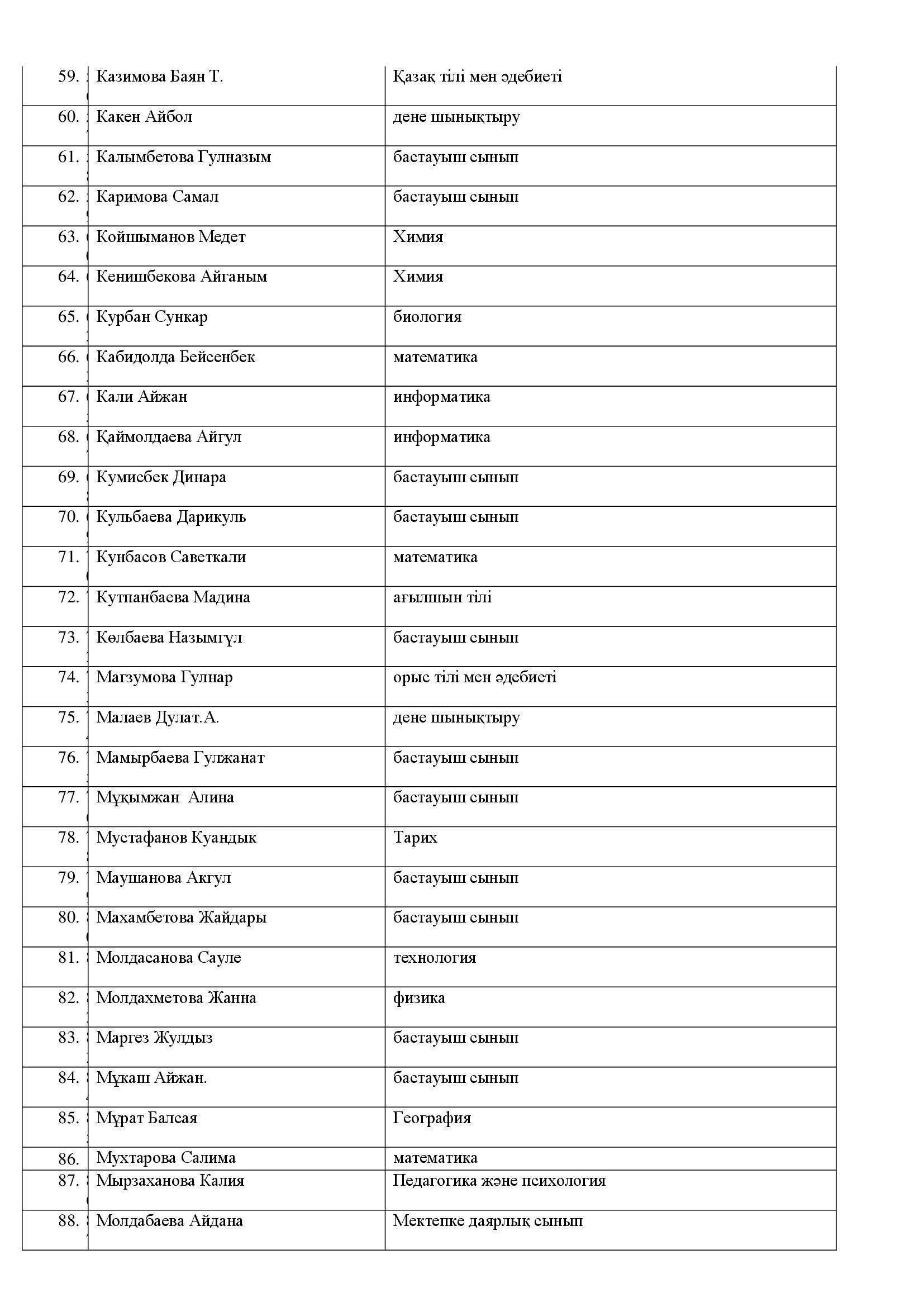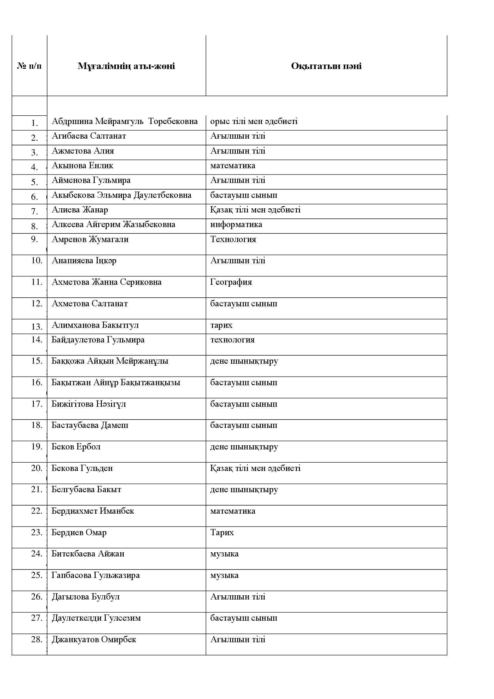 "№28 мектеп-гимназиясы"КММ-нің мұғалімдер тізімі