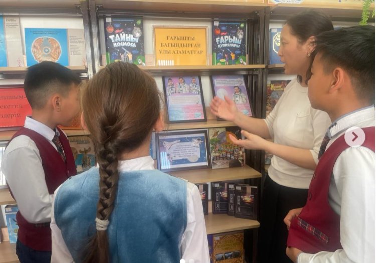12 апрель 2024 0 1 2 3 4 5 “Ғарышты бағындырған ұлы азаматтар “ Мектеп - гимназия кітапханасында Ғарышкерлер күніне орай “Ғарышты бағындырған ұлы азаматтар “ атты тақырыпта кітап көрмесі ұйымдастырылды.