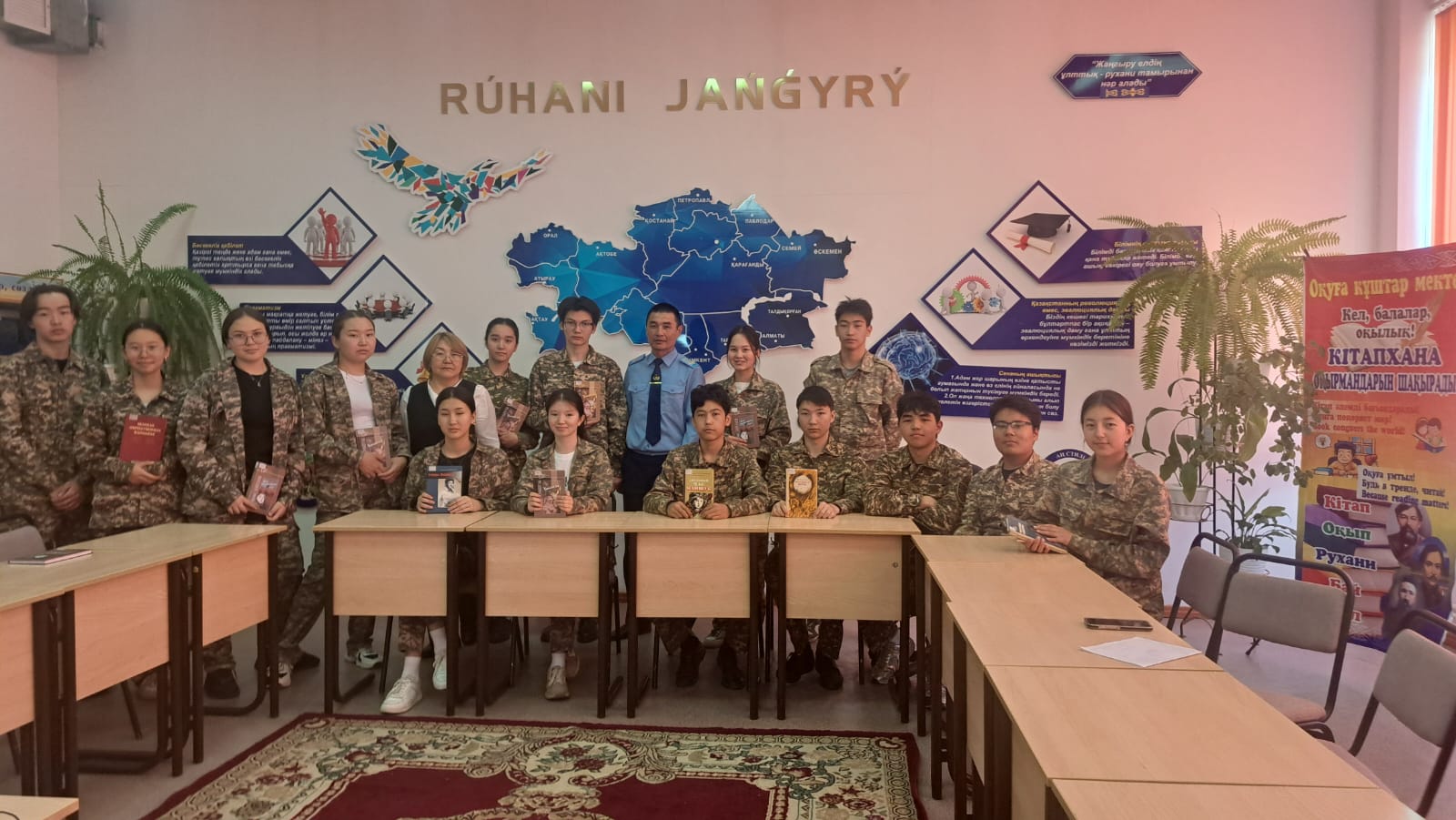 03 май 2024 0 1 2 3 4 5 "Қарулы Күштер және Ұлы жеңіс" Мектеп - гимназия кітапханасында Қазақстан Республикасының Қарулы Күштер және Ұлы жеңіске арналған кітаптарды оқу сағаты ұйымдастырылды.
