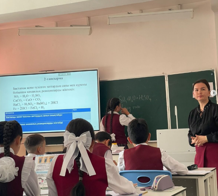 “Табиғат” бірлестігі онкүндігі аясында химия пәні мұғалімі Усманова Сауле Муаловна 8”Ә” сыныбымен “Химиялық реакция типтері” тақырыбында ашық сабақ өтті. » №28 МЕКТЕП-ГИМНАЗИЯ
