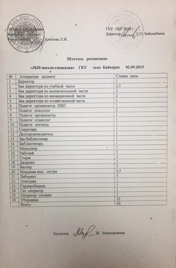 Тарификациялық тізім » №28 МЕКТЕП-ГИМНАЗИЯ