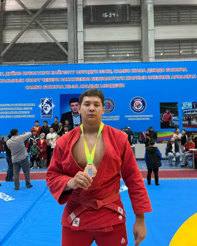 06 май 2025 0 1 2 3 4 5 Құттықтаймыз!!! Мектебіміздің мақтанышы 11ә сынып оқушысы Аздеров Санжар Қырғыз елінде өткен Самбо Халықаралық турнирінен қола жүлдегері атанды! 🥇✊Шын жүректен құттықтаймыз! Елімізге әйгілі спортшы болсын!
