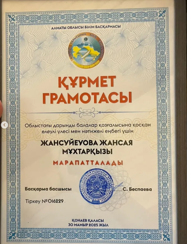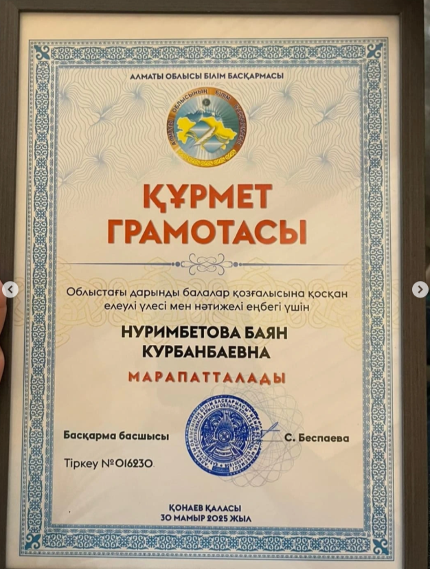 Мектебіміздің дарынды оқушылары Қыдырбай Інжу және Бейбарыс облыс әкімінің алғыс хаты және 30.000тг сертификатпен марапатталды. Осындай оқушыларымыздың жұлдызын жаққан жетекшілері Баян Курбанбаевна және Жансуйеуова Жансая әріптестерімізге алғысымызды білдіреміз. 💐💐💐