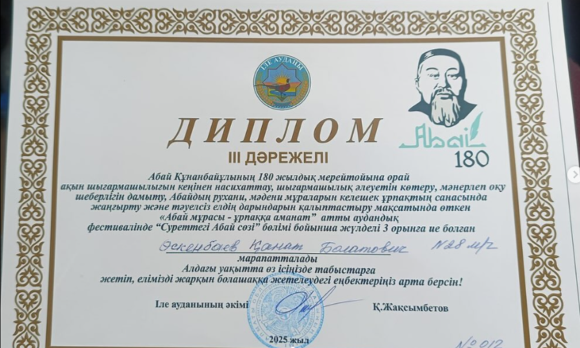 🏅 ІІІ дәрежелі Дипломмен – Ускенбаев Қанат Болатович марапатталды!