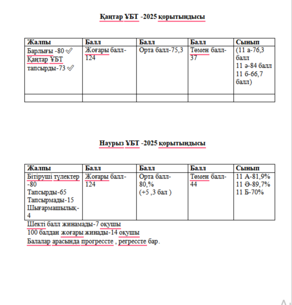 Қаңтар,наурыз-2025 ҰБТ қорытындысы